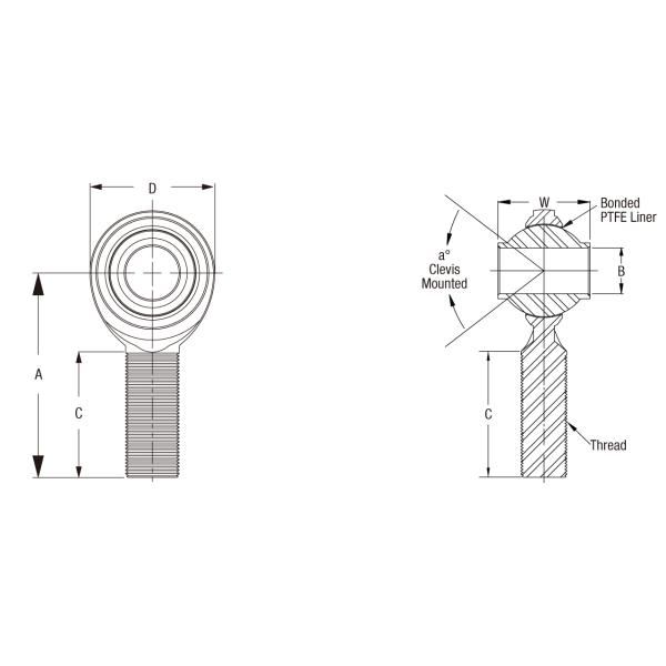 Part Number | Boundary Dimensions (inch) | Thread UNF-3A | Misalign Angle a° |